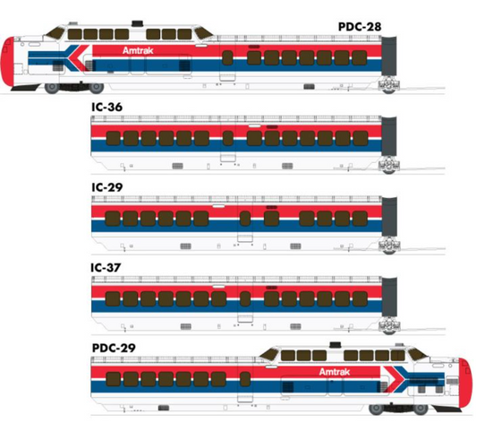 Rapido #203503 Updated Version 2.0 UAC TurboTrain (DC/DCC/Sound): Late Amtrak 5-Car Set #50-70-71-72-51