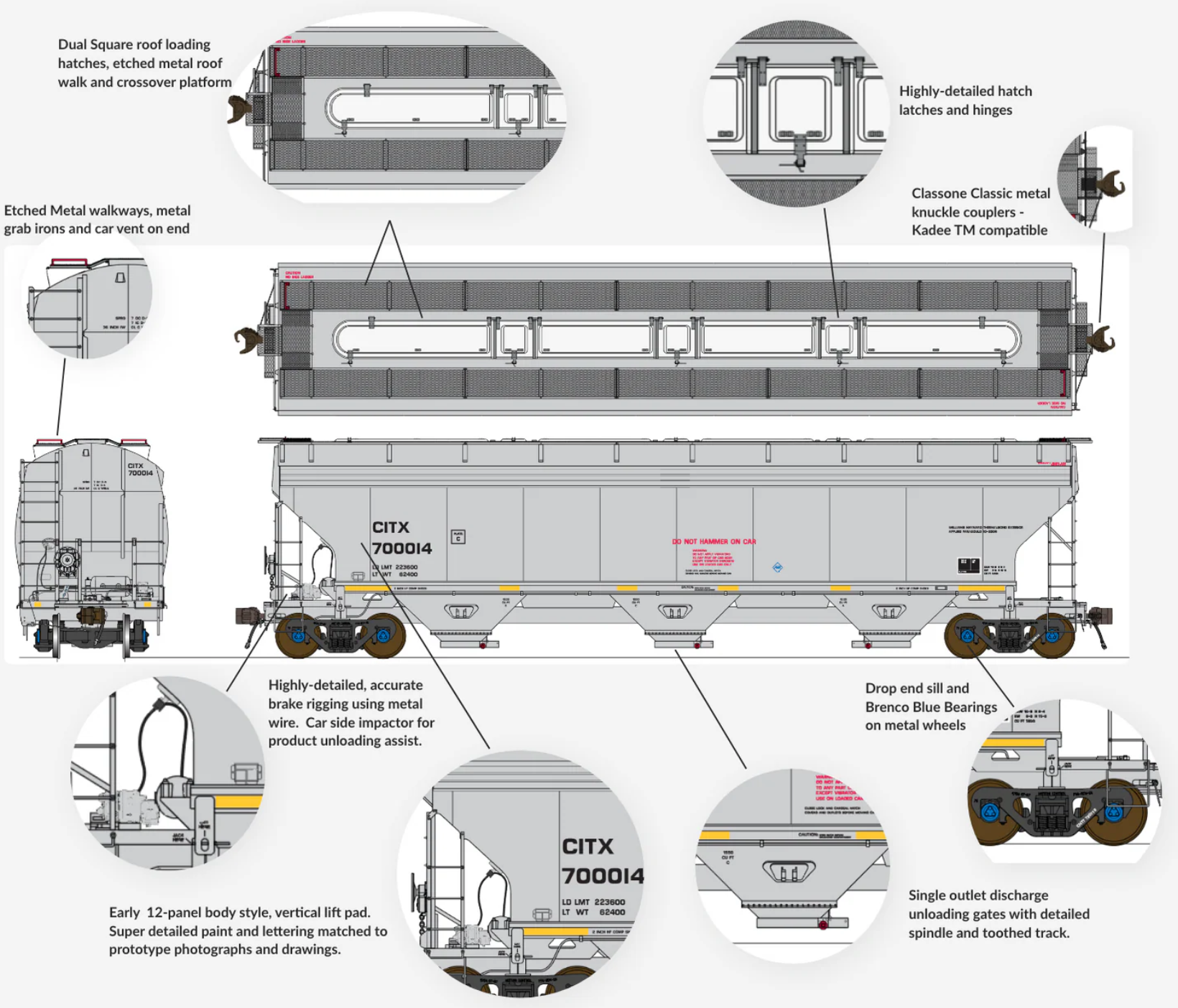 Class One Model Works ARI 5200 3-Bay Covered Hopper CIT Group CITX#700014 HO Scale