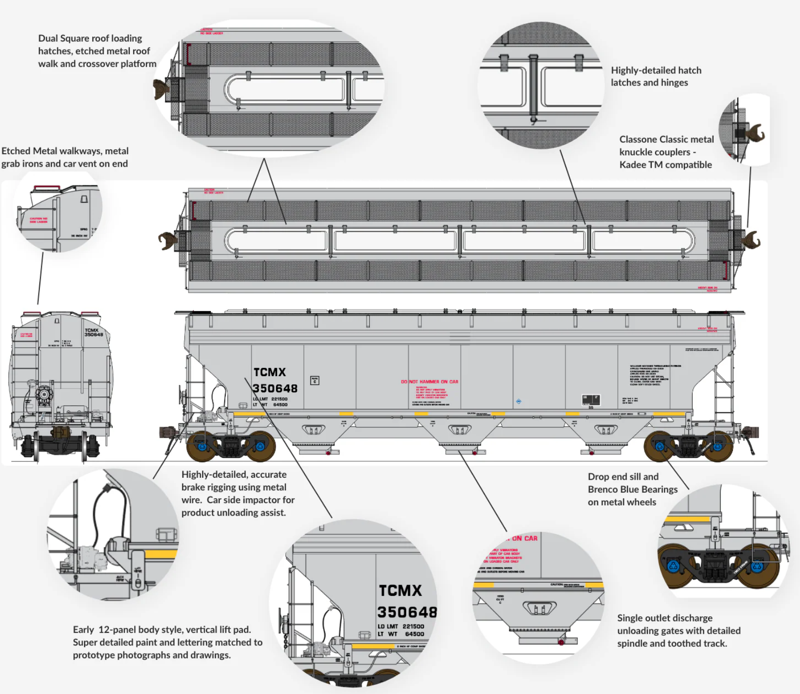 Class One Model Works ARI 5200 3-Bay Covered Hopper Transportation of America TCMX #350648 HO Scale