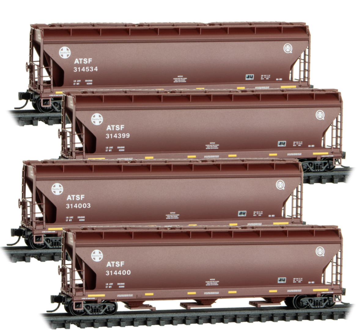 MicroTrains Line 3 Bay Covered Hoppers 4 Pack Santa Fe N Scale